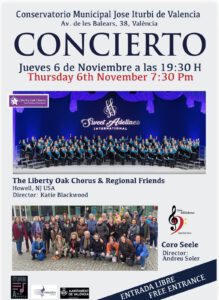 Konzert / Concierto Conservatorio José Iturbi 6/11/2025 Seelechor Harbour You raise me up Tears in heaven (2025) Sempre endavant Cantate Domino (Mark Hayes) The Liberty Oak Chorus, Howell, New Jersey USA